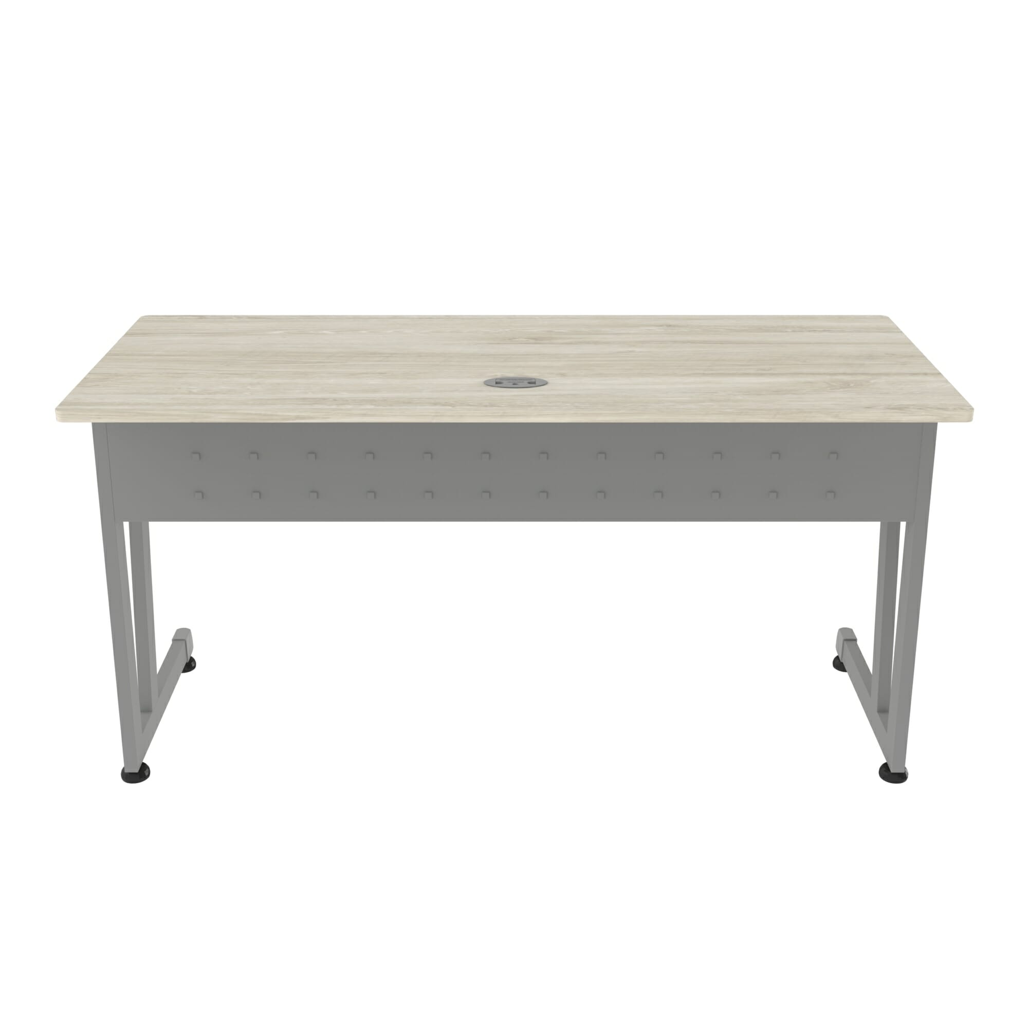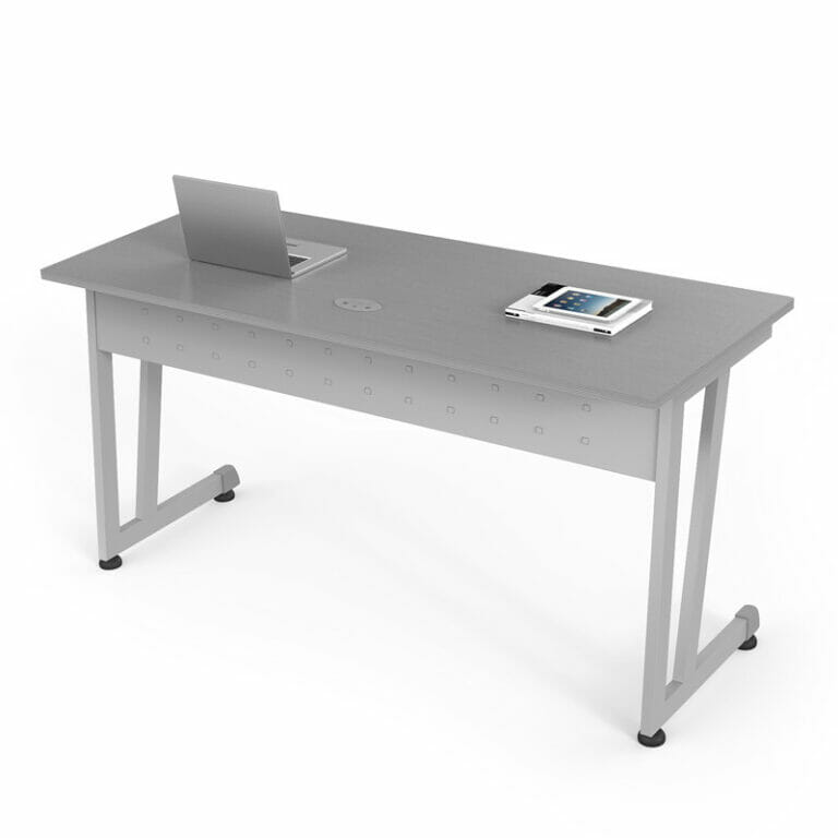 Escritorio de trabajo o capacitación mod. 153s con estructura metálica. Faldón metálico troquelado. Cubierta fabricada en melamina con cantos rígidos de pvc de protección.