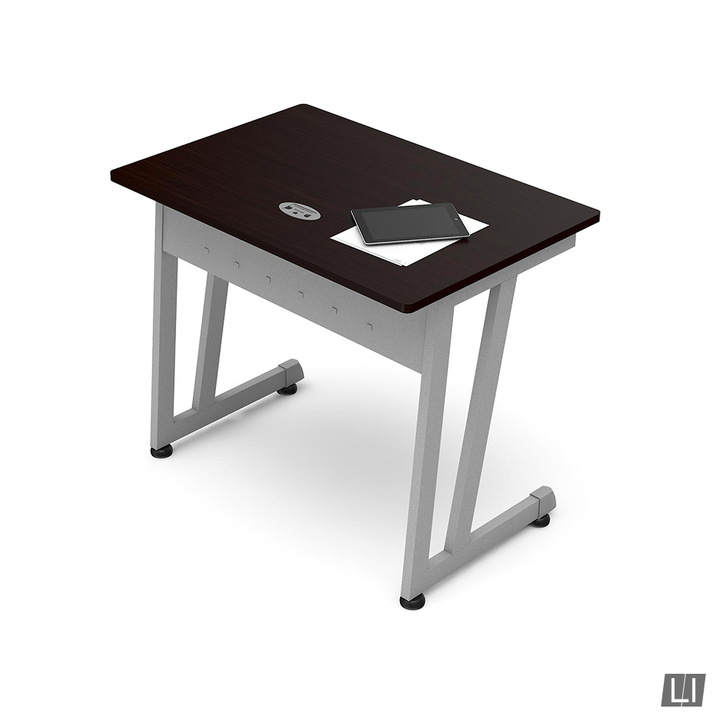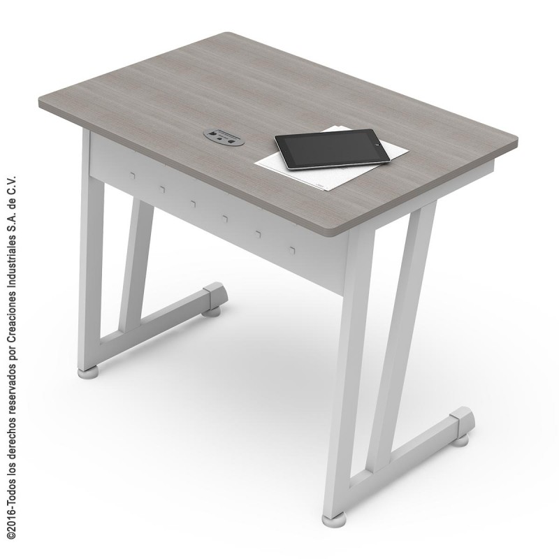 Escritorio de Trabajo mod. Piccolo con estructura metálica. Faldón metálico troquelado. Cubierta fabricada en melamina con cantos rígidos de pvc de protección.