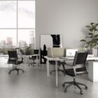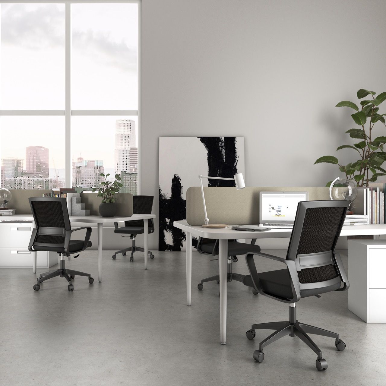 Escritorio de trabajo mod. Arezzo con estructura metálica con. Faldón en melamina. Cubierta fabricada en melamina con cantos rígidos de pvc de protección. Con 2 cajones (1 cajón papelero y 1 cajón para archivo)