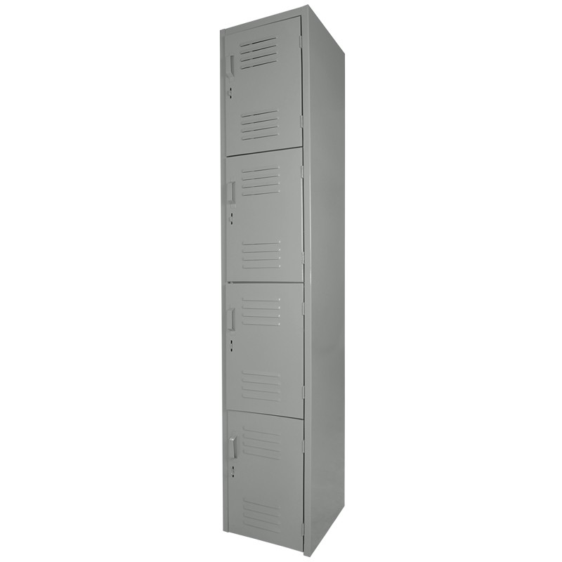 Locker metálico de 4 puertas con rejillas de ventilación y portacandado. Fabricado en lámina de acero rolada en frio cal 24.