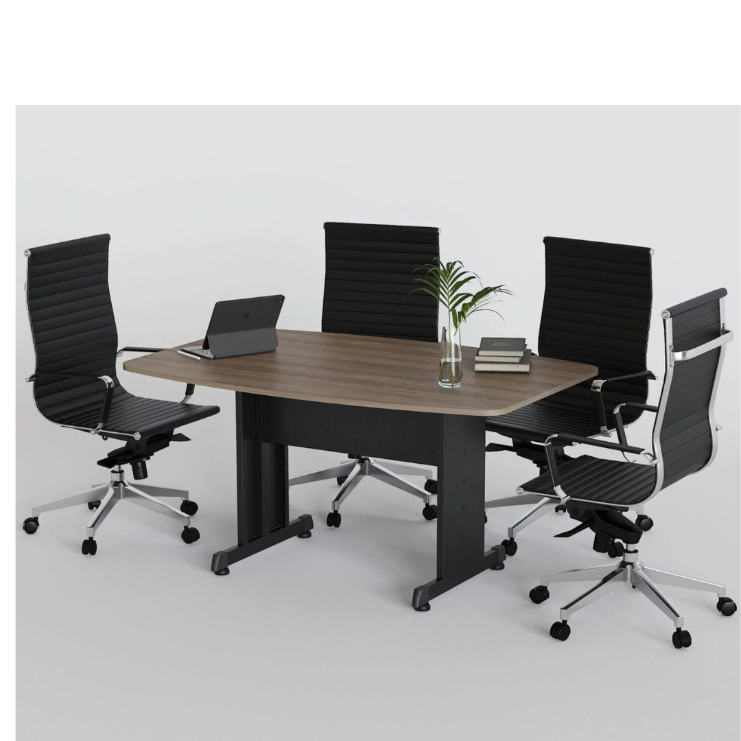 Mesa de juntas con estructura base tubular con faldón metálico, terminada en pintura epóxica horneada. Cubierta en melamina con cantos de pvc termo adheribles de protección.