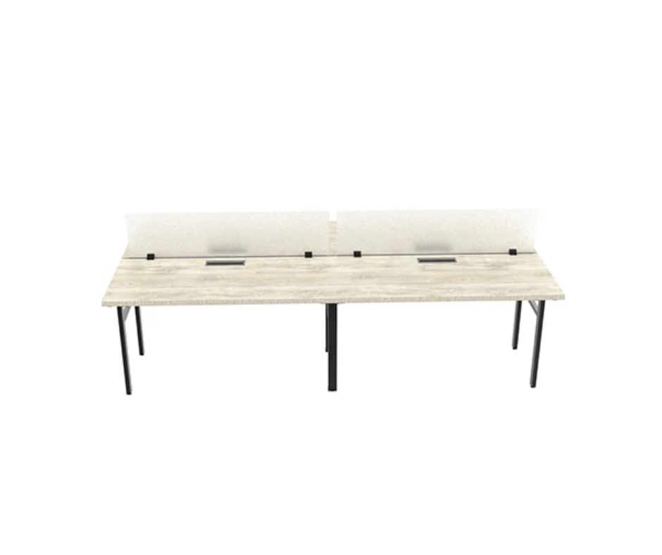 Módulo de trabajo para 4 usuarios mod. Elink 625 con estructura metálica. Cubiertas fabricadas en melamina con cantos rígidos de pvc de protección. Cuenta con 2 mamparas divisoras fabricadas en acrílico.