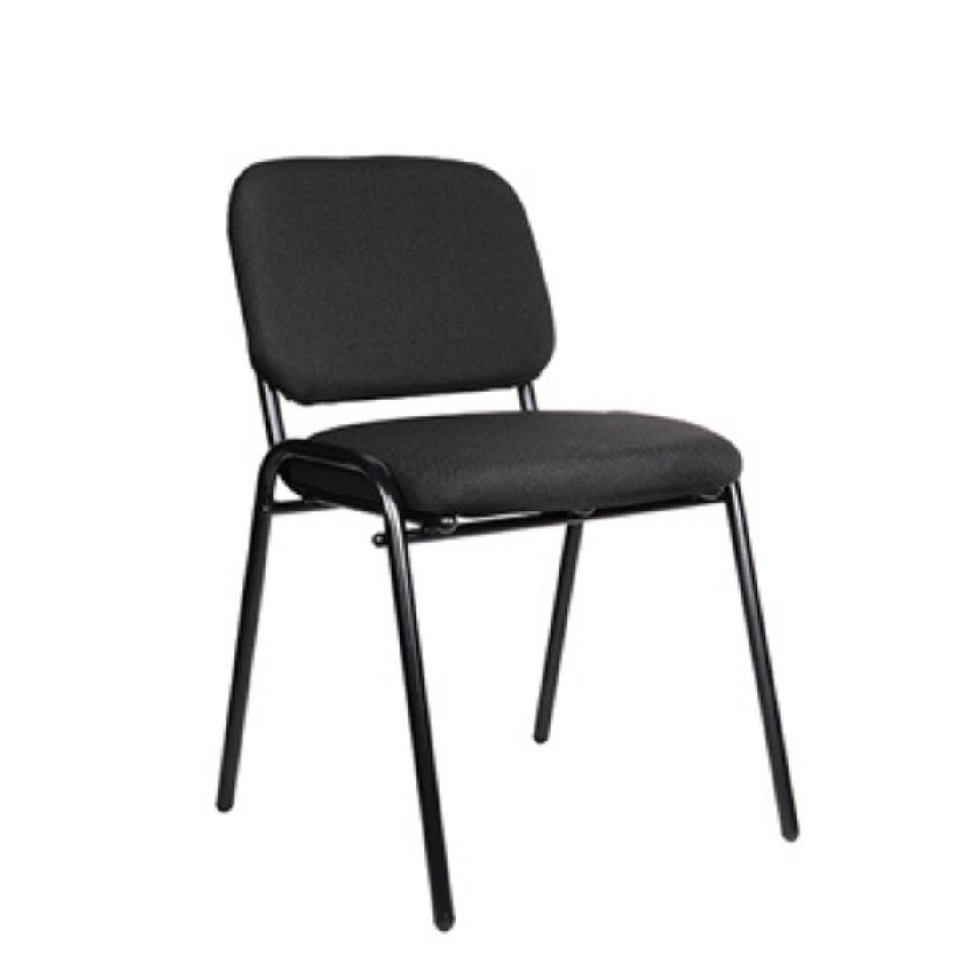 Silla fija con estructura tubular redondo con terminado en color negro. Respaldo y asiento acojinados y tapizados en tela.