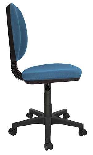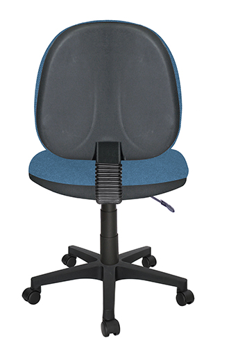 Silla  con respaldo y asiento acojinados  de hule espuma laminado flexible con densidad de 22 kgs/m³ en el respaldo y 24 kgs/m³ en el asiento tapizados en tela de color de su elección del muestrario.  Mecanismo secretarial de plato de acero con pistón neumático para ajuste de altura. . Base de poliamida con 5 rodajas dual.