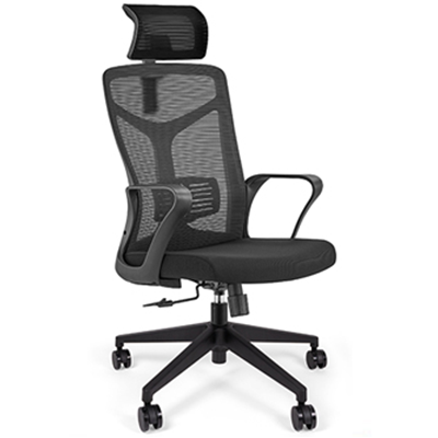 Sillón ejecutivo con respaldo alto con cabecera ajustable tapizado en malla. Asiento con hule espuma laminado flexible con alta densidad de 30 kgs/m3 con retardante a la flama y alta resiliencia tapizado en tela color negro. base spinner rodajas tipo dual. Mecanismo ejecutivo de palto de acero con pistón neumático para ajuste de altura y reclinamiento con bloqueo. Perilla para ajuste de tensión. Base de poliamida con 5 rodajas dual.